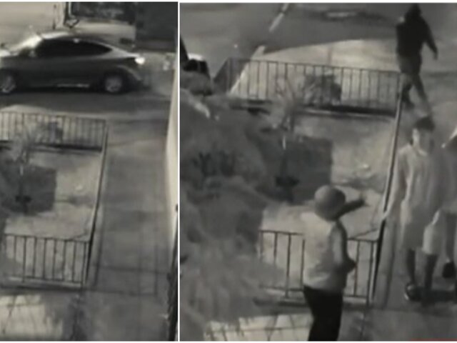 Cámaras de seguridad registraron el momento exacto en que dos avezados delincuentes bajan de un automóvil, y con armas de fuego apuntan a una pareja de enamorados que se encontraban llegando a su vivienda ubicada en el cruce de la calle Universitaria, y la calle 13 del distrito de San Martín de Porres.