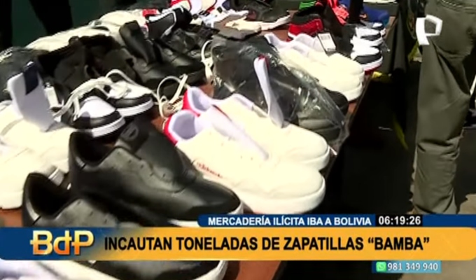 Uno a uno iban bajando los costales llenos de zapatillas 'bamba'. Cada una de ellas había sido adulterada simulando ser de reconocidas marcas como Nike, Puma o Reebook. Todo ha sido valorizado en S/ 10 millones que tenían como destino desaguadero, para finalmente ser vendidas en el mercado boliviano.