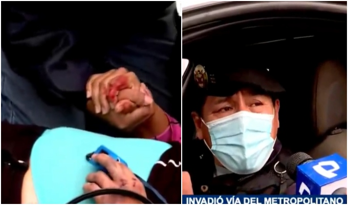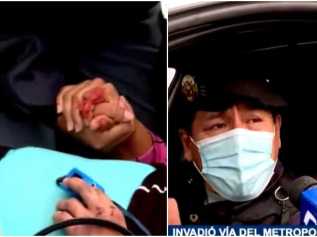 Haciendo uso prohibido de la vía exclusiva del Metropolitano, un policía a bordo de un patrullero atropelló a una señora y la dejó herida en el cruce de la avenida Tomás Valle y Túpac Amaru, en el distrito de San Martín de Porres.