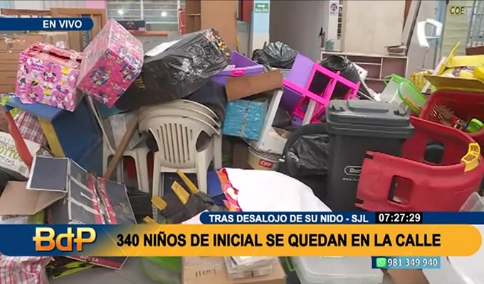 Cerca de 350 niños del colegio inicial "Virgen del Carmen" se han quedado en la calle, luego que fueran desalojados del local donde funcionaba el centro educativo, en el distrito de San Juan de Lurigancho.