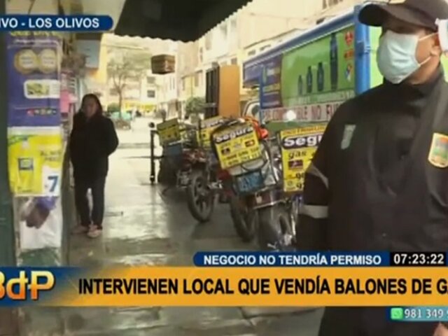 Los Olivos: Intervienen local que vendía ilegalmente balones de gas