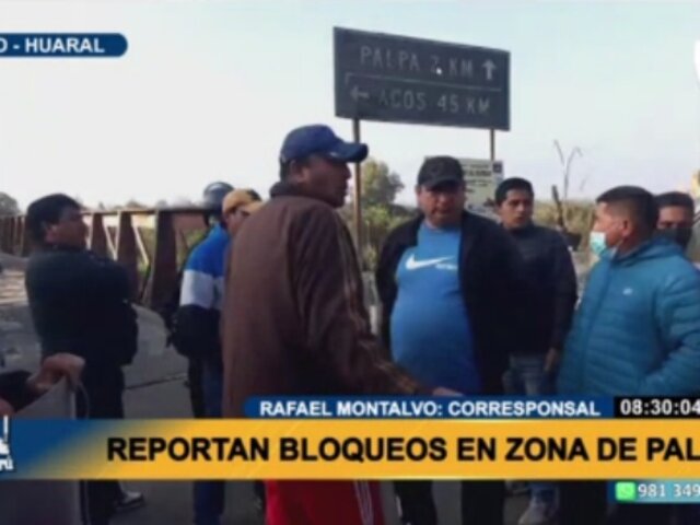 A pocos minutos de Huaral, en el centro poblado Palpa, nuestro corresponsal Rafael Montalvo reportó un bloqueo de algunos transportistas de carga pesada, quienes acatan el paro nacional debido al alza de combustible.