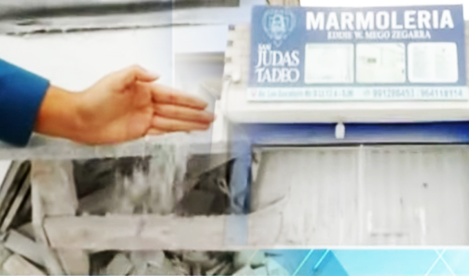 En el distrito de San Juan de Miraflores, en la avenida Los Eucaliptos, un grupo de vecinos denuncian a una empresa dedicada a la elaboración de lápidas de mármol, ya que la producción de estas al aire libre contamina todo con el “polvillo” producto de su tallado.