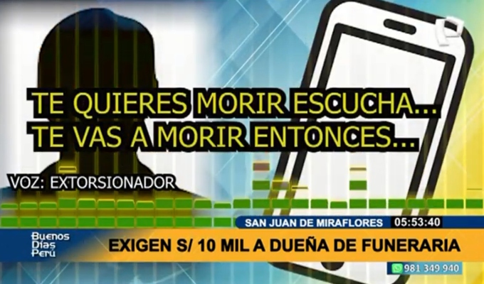 Extorsionadores exigen pago de S/10 mil a dueña de funeraria para no atentar contra su vida
