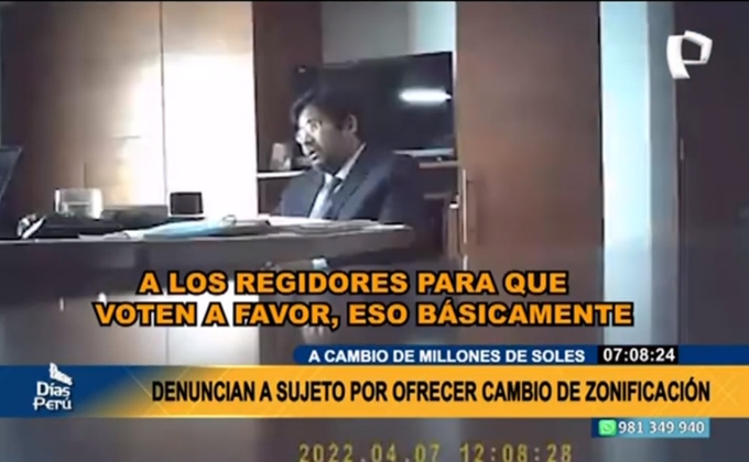 La Policía se encuentra tras los pasos de un sujeto, que a través de la difusión de un registro audiovisual, se muestra ofreciendo un cambio de zonificación en Lima 'por lo bajo' a un empresario, a fin de que su obra sea ejecutada y a su manera.