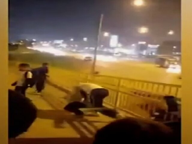 Se registró otro enfrentamiento entre estudiantes de un colegio de Comas que utilizaron un puente peatonal, cercano al óvalo Infantas, como escenario para agarrarse a golpes.