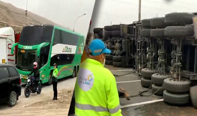 Tráiler vuelca y bloquea la Panamericana Sur en Lurín