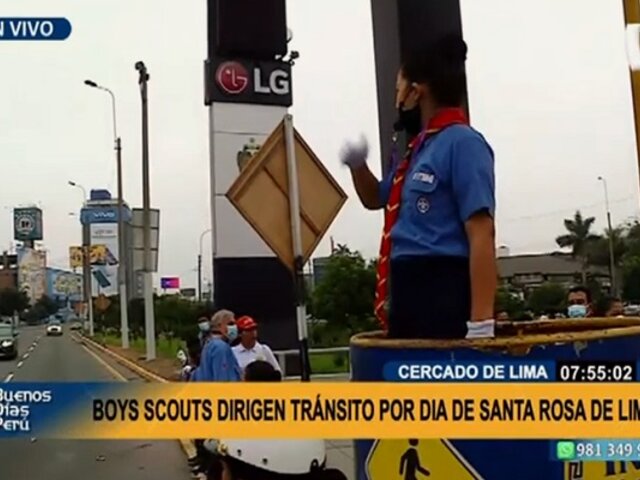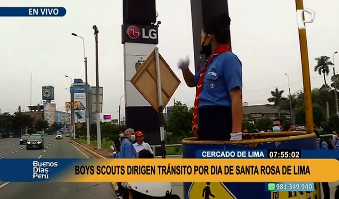 Los jóvenes del Movimiento Scout dirigirán hoy el tránsito vehicular en las principales calles y avenidas de Lima y el Callao, en el marco de la celebración a Santa Rosa de Lima, patrona de la Policía nacional del Perú (PNP).