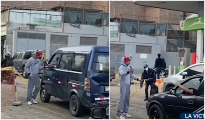 El hombre además aprovecha la larga congestión vehicular que se forma en la avenida Parinacochas, que viene siendo refaccionada. Hasta el lugar llegó nuestro reportero Marco Matías, quien indicó que el sujeto llega al promediar las 5 de la tarde.