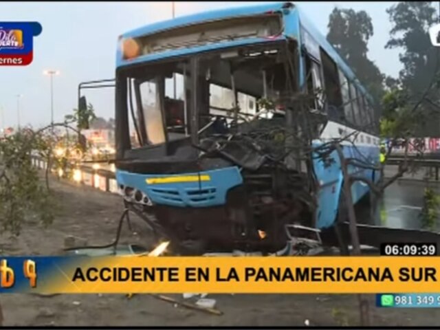Un aparatoso accidente vehicular protagonizó un bus de transporte "pirata" en una vía de la Panamericana Sur en el distrito de San Juan de Miraflores.