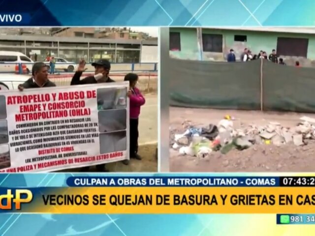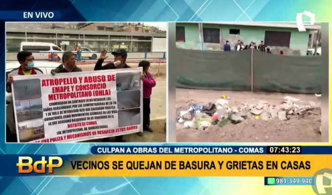 La falta de planificación en la construcción de obras sigue generando un caos en diferentes distritos. Los más afectados son los vecinos, en este caso, del distrito de Comas que han alzado su voz de protesta luego de percatarse que sus viviendas han empezado a agrietarse.