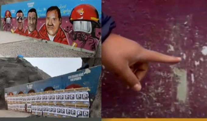 Aunque se pudo comprobar que los afiches fueron despegados, el mural ha sufrido daños en su pintura, tal como se pueden ver en las imágenes.