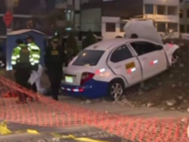 Pese a las mallas de seguridad, el taxista no logró frenar y arrasó con las señales de seguridad, empotrándose contra el montículo de tierra. Aún se desconoce la identidad de la víctima.