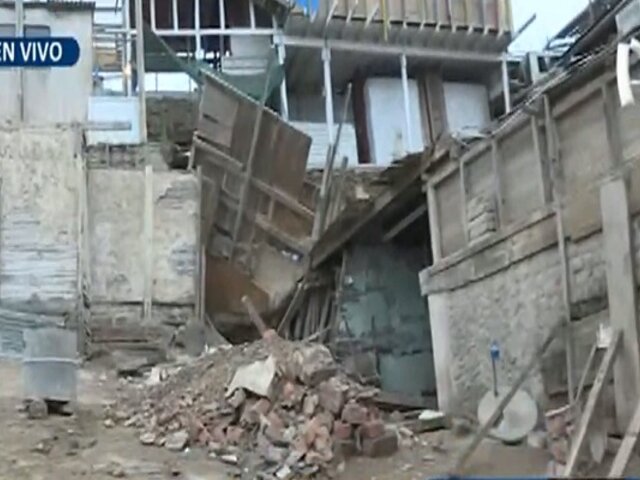 Un muro de contención, hecho de maderas y piedras, cayó y destruyó una vivienda ubicada en el barrio Alto Perú, en Chorrillos. La señora Verónica, propietaria del inmueble afectado responsabiliza a su vecino, quien es dueño de una cevichería por lo ocurrido.