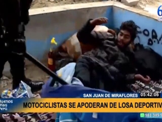 Tomaron una losa deportiva para hacer sus maniobras temerarias. En imágenes se observa a un grupo de motorizados perturbando la tranquilidad de los vecinos en el distrito de San Juan de Miraflores durante altas horas de la noche.