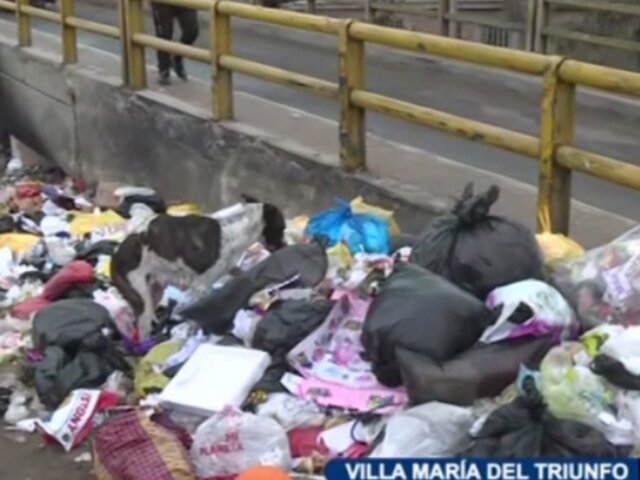 Vecinos de la cuadra 6 de la avenida Unión en Villa María del Triunfotienen que soportar a diario el mal olor que genera la basura acumulada en las faldas del puente peatonal Micaela Bastidas que conecta al Metro de Lima.