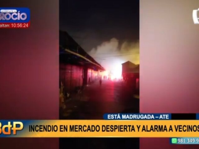 Esta madrugada, un incendio destruyó dos puestos del mercado Plaza Josfel, ubicado en el cruce de la Carretera Central con Separadora Industrial, en Ate. Algunos comerciantes se encontraban dentro de este centro de abastos, por lo que uno de ellos resultó herido.