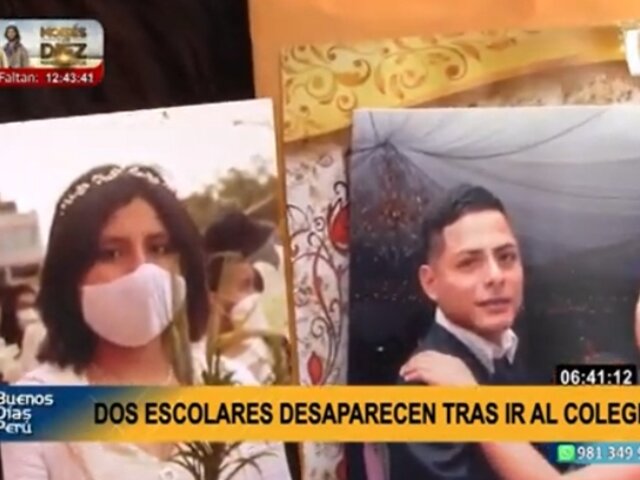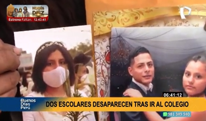 Sus familiares tienen temor de que hayan sido captadas por un adulto, y ya acudieron a la Policía Nacional (PNP) para hacer la denuncia respectiva. Si Ud. tiene información sobre el paradero de estas dos escolares, comuníquese al: 9517 62277 o al 920387675.