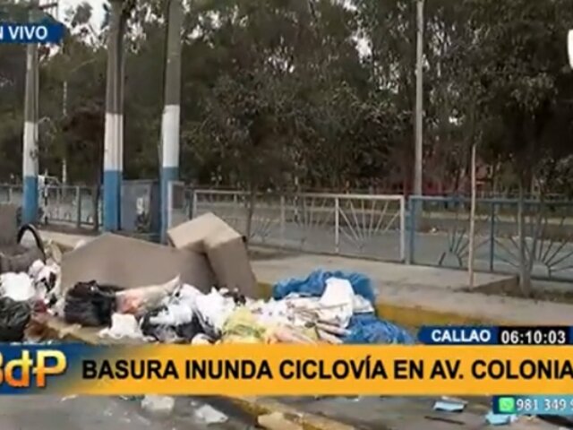 Vecinos del Callao denunciaron que una ciclovía de la avenida Colonial se ha convertido en un basural producto de los residuos que arrojan personas inescrupulosas. Tal como se ve en imágenes, entre los desperdicios abandonados están muebles viejos, basura, desmonte, entre otros.