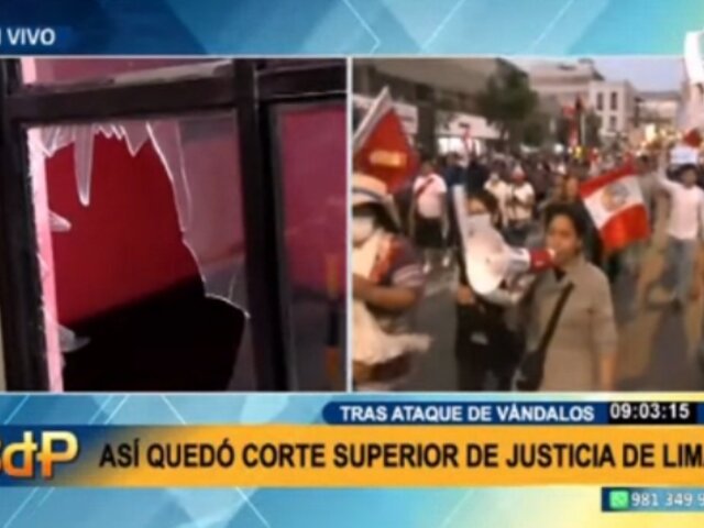 Desataron el caos y causaron múltiples daños materiales. Un grupo de vándalos desataron el caos en Lima y atacaron la sede de la Corte Superior de Justicia de Lima, en la avenida Abancay en el Cercado de Lima. Lanzaron piedras y pusieron en peligro vidas.