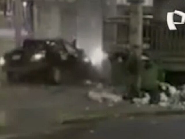 Las cámaras de seguridad de la zona registraron cómo la camioneta de color rojo impactó contra el taxi. Después que el auto más pequeño colisionara contra el puente, se observa a la unidad más grande detenerse por momento, y luego emprende la huida.