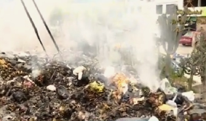 Vecinos denuncian que la Municipalidad de San Juan de Miraflores no recogen la basura en el paradero Amauta en la Panamericana Sur. Señalan que desde hace tres semanas los residuos se vienen acumulando en dicho lugar, por lo que han optado por quemar los desperdicios.