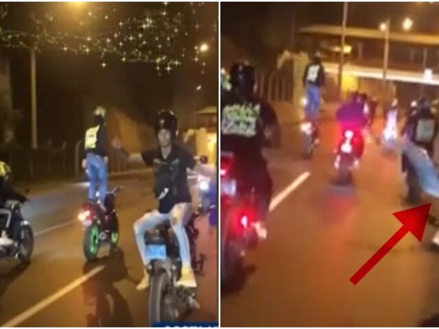 Los videos grabados por ellos mismos registraron que no solo el motociclista herido era el único realizando las piruetas. A su lado también se encontraba otro sujeto que sin temor a nada suelta la unidad y se para sobre la moto desafiando a la gravedad.