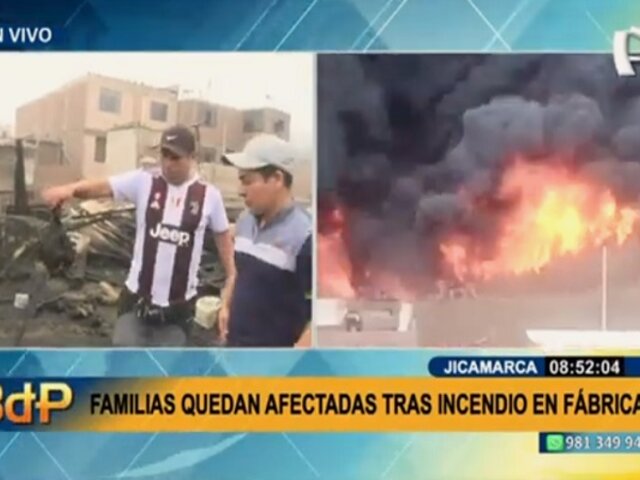 Un incendio de grandes proporciones en un depósito de químicos afectó alrededor de 4 viviendas aledañas en la avenida Jicamarca en San Juan de Lurigancho.