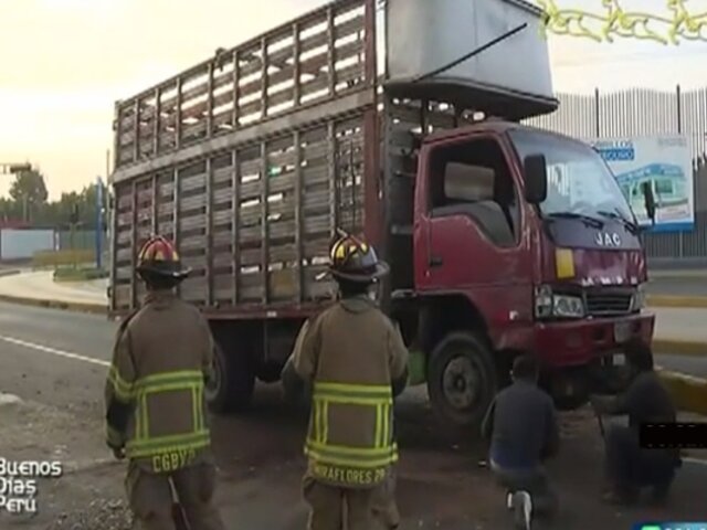 Camión que transportaba pollos sufre aparatoso accidente al dar vueltas de campana en Chorrillos