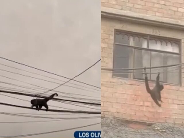 Mono suelto se pasea por cables de luz en Los Olivos y corre peligro de ser electrocutado