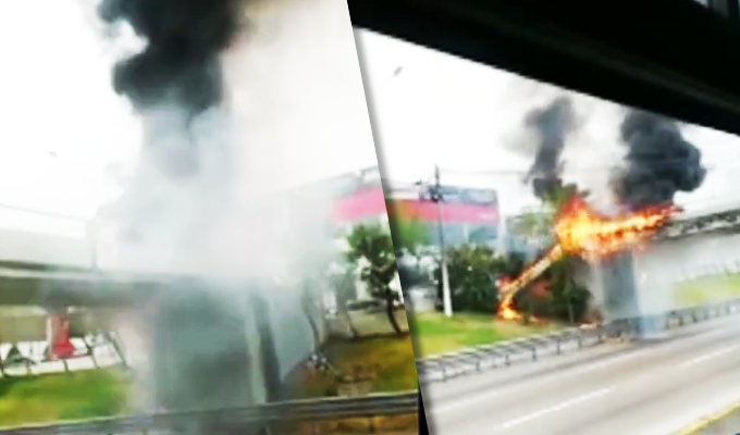 Las llamas se originaron en un puente peatonal de la Vía Expresa de Paseo de la República, en el distrito de La Victoria, lo que causó la alarma entre los conductores y los transeúntes que circulaban por la zona.