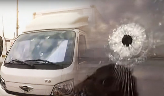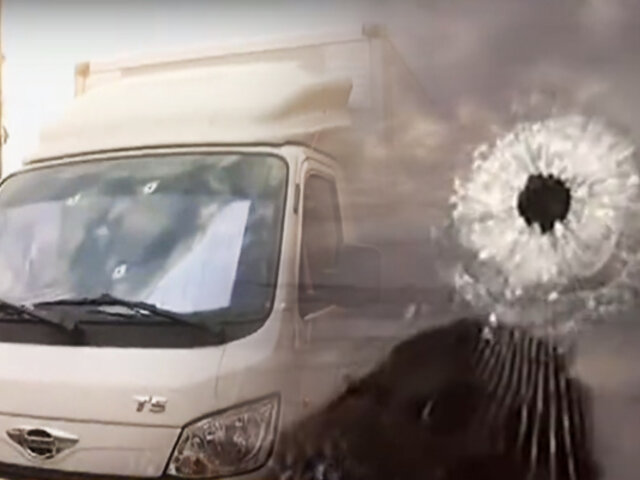 Los hampones abrieron fuego contra el conductor, en el vehículo se registran hasta 8 impactos de bala en la cabina del camión, y otros en la parte trasera del furgón, lo que evidencia la violencia del ataque.