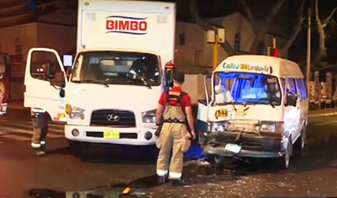 Tres heridos tras el choque de combi con camión furgón en San Isidro