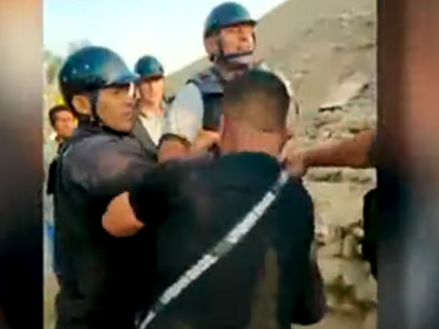Completamente fuera de sus cabales, un agente de la Policía Nacional del Perú (PNP) atacó cobardemente a una agente del serenazgo. El agente intentó impedirle que grabe la intervención.