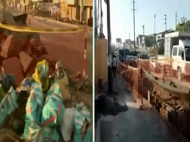 En Villa María del Triunfo (VMT), las obras inconclusas generan congestión vehicular en la avenida Pachachutec y calles paralelas. En el lugar se visualizan los carteles de señalización que indican que se estaba realizando la obra.