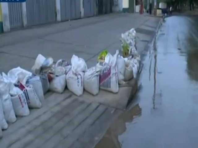 Los vecinos colocaron sacos de arenas en los exteriores de sus viviendas para evitar que el agua ingrese.