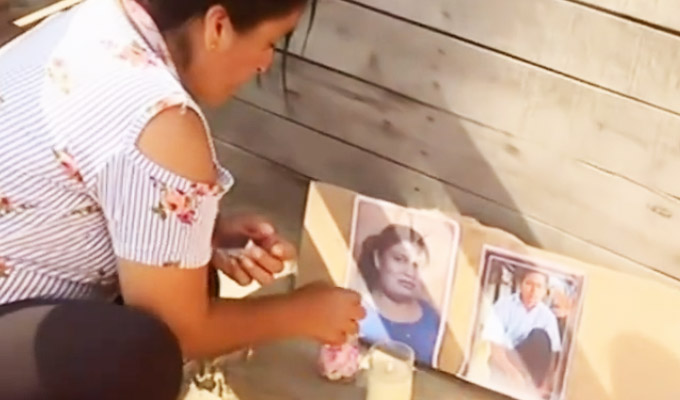 Esta mañana en las afueras de la vivienda de los fallecidos, familiares y amigos ponen sus fotos con velas a manera de duelo.