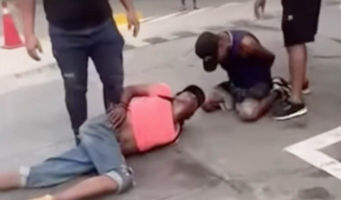 Son "Los Vándalos" mordiendo en polvo cuando pretendían asaltar un grifo ubicado en el jirón Puruchuco en Mangomarca, en el distrito de San Juan de Lurigancho.