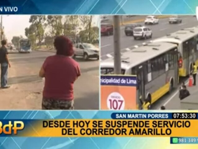 Tome sus precauciones. Los servicios de las rutas 101 y 107 del corredor amarillo han quedado suspendidas desde hoy lunes 24 de abril. Y es que días atrás, la ATU explicó que la medida no afectará los viajes de los usuarios, ya que hay nueve rutas de transporte convencional que tienen similar origen y destino.