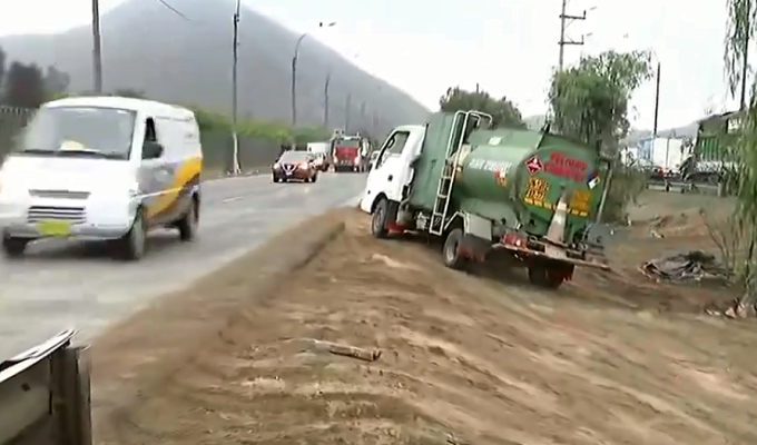 ¡Irresponsabilidad sin límites! Conductores de camiones de carga pesada, taxistas y otros chóferes arriesgan sus vidas al cruzar de manera imprudente y temeraria la berma central en la avenida Ramiro Prialé para evitar el intenso tráfico que se genera todas las mañanas.