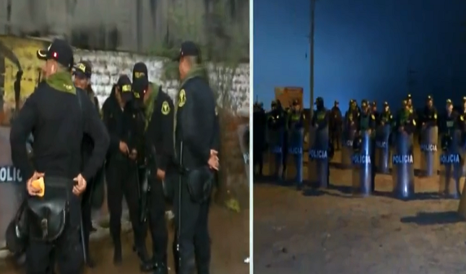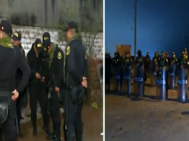 Al lugar llegaron los agentes de la Policía Nacional y la Policía Montada para proceder con el desalojo de las familias, que no están de acuerdo con la medida, incluso algunos incendiaron llantas y colchones en forma de protesta.