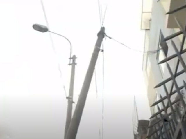 Vecinos de la cuadra seis de la avenida Alejandro Tirado, en Santa Beatriz, están muy preocupados pues un poste de telefonía está a punto de caer tras ser impactado por un auto.