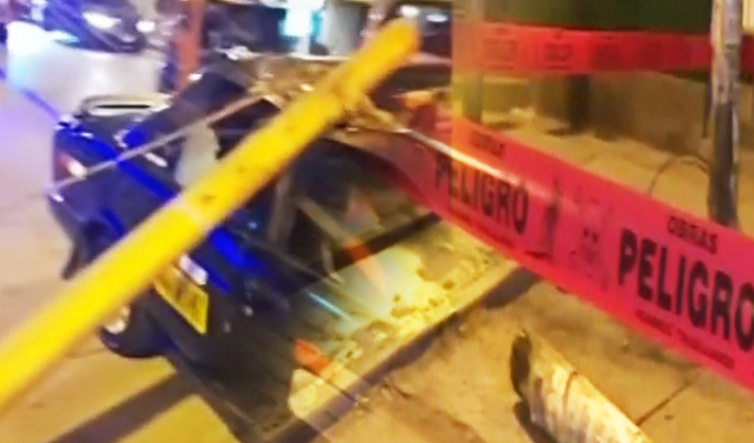 En el lugar cuando el auto se detuvo, un poste de telefonía cayó encima del taxi cuando el padre de familia estuvo a punto de bajar.