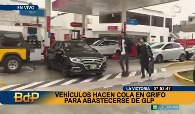 Se registran largas filas de autos en los grifos de la capital debido a la falta de combustible. Un equipo de Buenos Días Perú llegó al distrito de La Victoria para entrevistar a algunos conductores que buscan abastecerse de GLP, escaso en algunos establecimientos o con precios elevados.