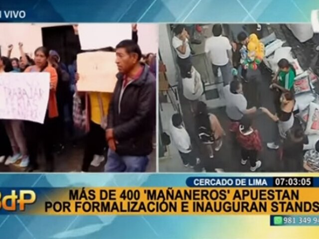 Un grupo de comerciantes ambulantes, pertenecientes al Cercado de Lima, realizó un plantón este martes para solicitar que los dejen ocupar la avenida Grau desde las 4 hasta las 9 de la mañana, en lo que denominan 'Feria Mañanera'.
