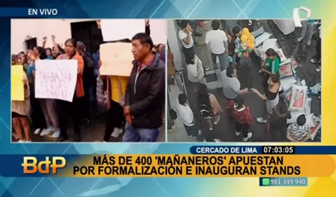 El grupo de persona se manifestó con pancartas y arengas en el cruce del jirón Montevideo con el jirón Ayacucho, donde pedían a las autoridades que los empadronen y formalizar sus negocios.