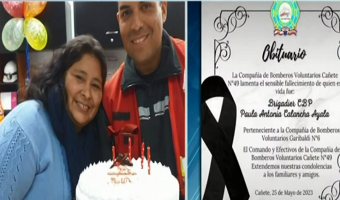 El cuerpo General de Bomberos confirmó la muerte de la bombera Paula Antonia Calancha Ayala, segunda jefa de la compañía Garibaldi 6 de Chorrillos.