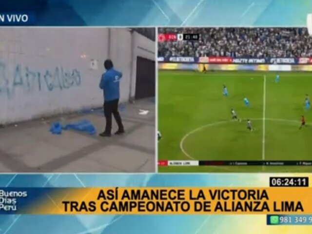 Toda la hinchada blanquiazul festejó tras el triunfo de Alianza Lima por 6-1 frente a Deportivo Binacional, resultado que lo consagró como campeón del Torneo Apertura a falta de dos jornadas. Sin embargo, la felicidad de los fanáticos se desbordó al punto de dejar las calles aledañas al estadio Alejandro Villanueva de Matute, en el distrito de La Victoria, llenas de basura.