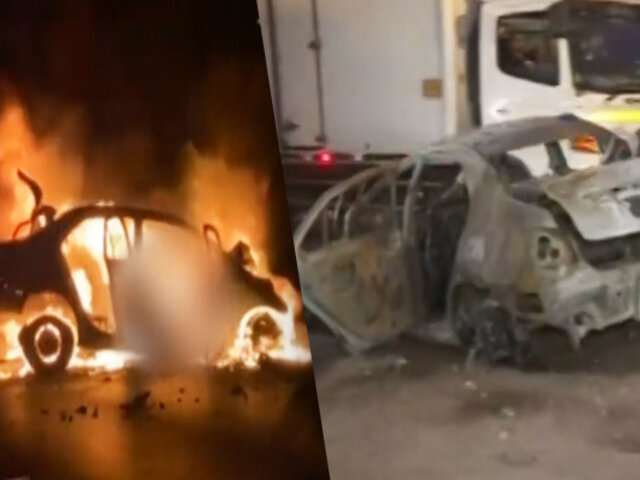 En Lurín, un delincuente murió calcinado tras chocar el auto que robaron contra un camión tráiler. Su cómplice terminó con quemaduras de tercer grado y fue trasladado al hospital de Villa el Salvador.