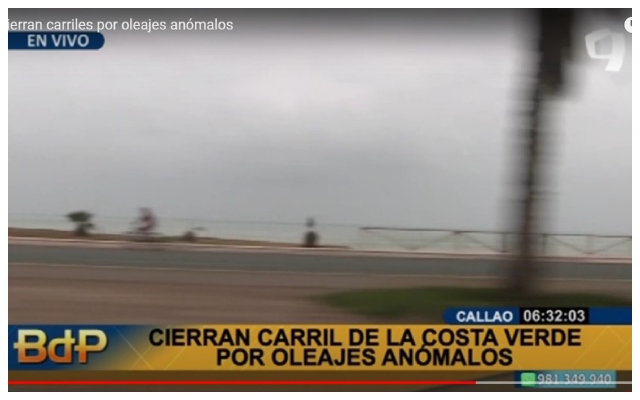 La Municipalidad del Callao ha decidido cerrar un carril de la Costa Verde de Callao en dirección a Chorrillos por la presencia de un fuerte oleaje anómalo.